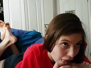 Hübsches Mädchen lutscht Schwanz des uncut