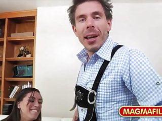 Britische Hausfrau Doggystyle mit einem Fremden vor den Augen ihres Mannes